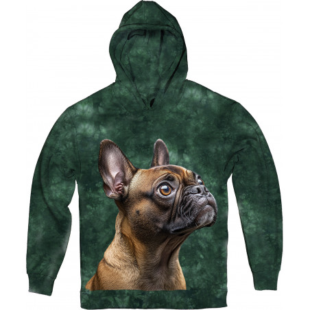 Wrap yourself in devotion with this ultra-realistic French Bulldog hoodie. Set against a...