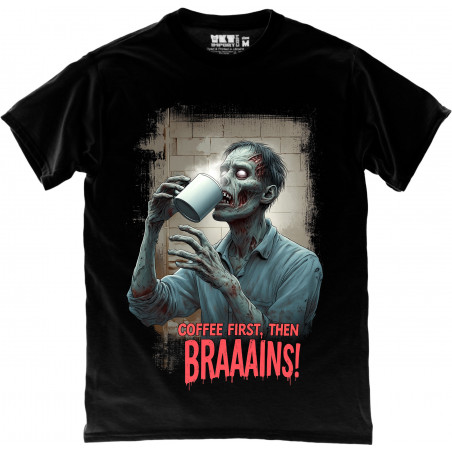 Start your mornings undead-style with this hilarious zombie T-shirt. Featuring a creepy...