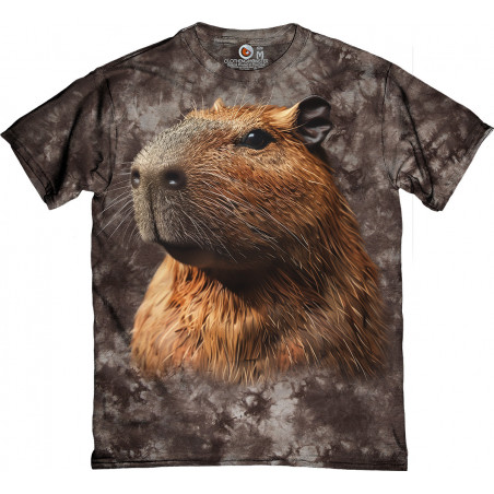 Unique brown T-shirt featuring a hyper-realistic hippo face print across the entire front....