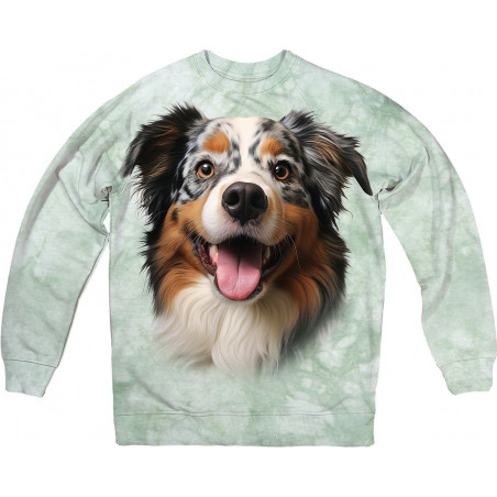 Fun and cozy sweatshirt with a bold cartoon print of a red dog featuring huge eyes and a...