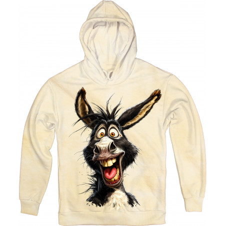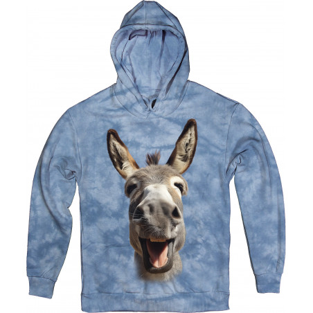 Feeling blue? This hoodie isn’t. Featuring a ridiculously happy donkey on a cool tie-dye...