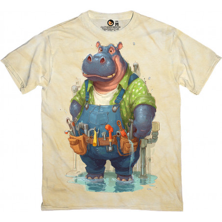 Funny and colorful t-shirt featuring a hippo plumber in overalls with a tool belt. Perfect...