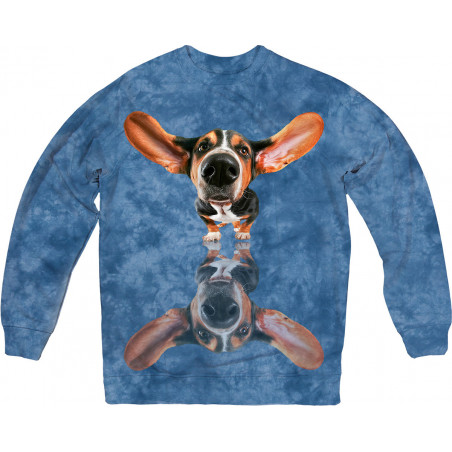 Fun and cozy sweatshirt with a bold cartoon print of a red dog featuring huge eyes and a...