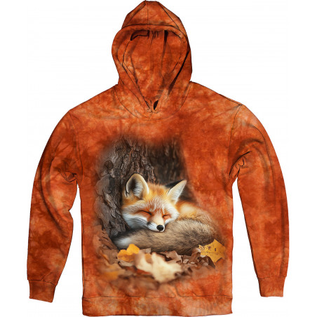 Wrap yourself in the warmth of the forest with this stunning sleeping fox hoodie!...