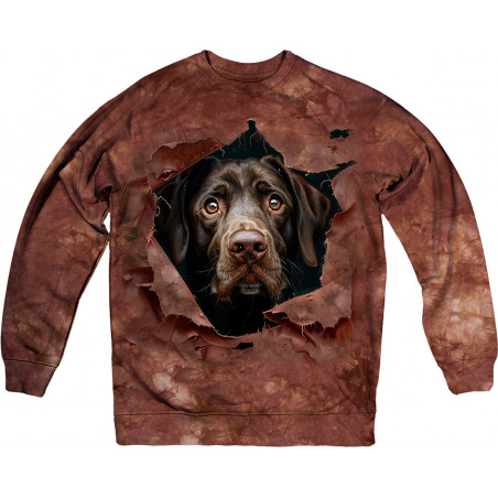 Fun and cozy sweatshirt with a bold cartoon print of a red dog featuring huge eyes and a...