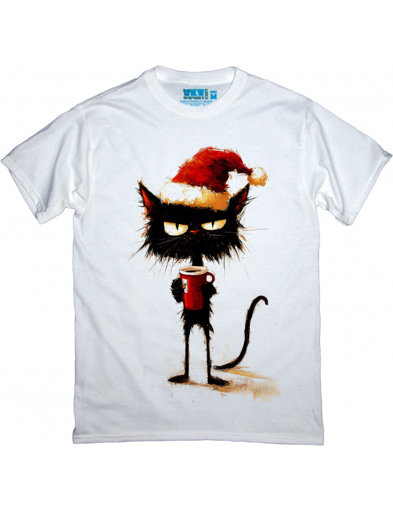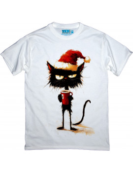 Coffee first, Christmas later. Sassy Claus Cat T-shirt is for those who feel the same!