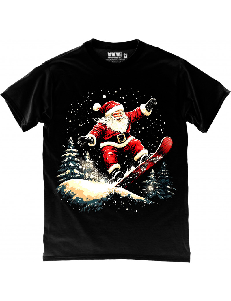 Who said Santa's all work and no play? Watch him carve up the slopes in style! This festive t-shirt brings holiday cheer with a dose of adrenaline. Perfect for snowboarders and Christmas lovers alike. Get your seasonal stoke on!