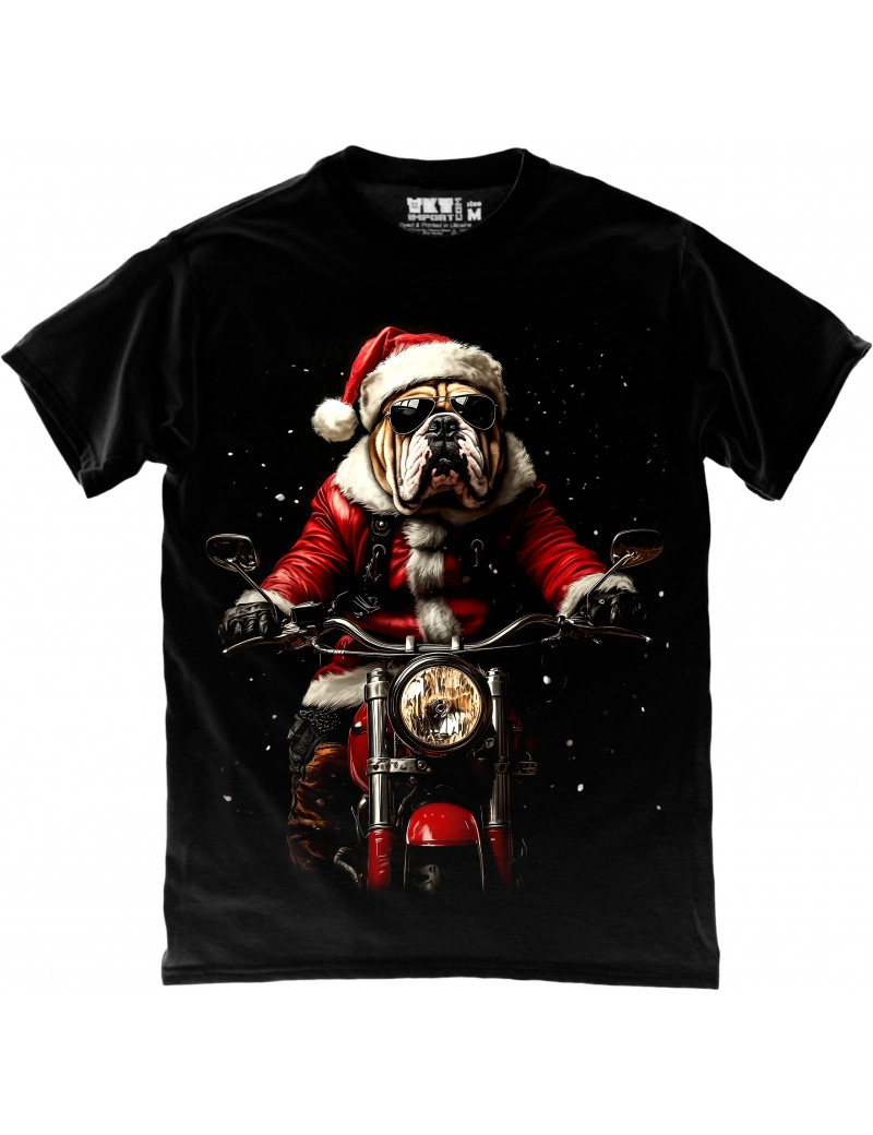 Rev up the festive vibes with this hilarious T-shirt! Featuring a bulldog dressed as Santa on a roaring motorcycle, this design blends holiday cheer with a rebellious edge. Perfect for anyone who loves Christmas with a side of adventure and attitude. Make a bold statement this holiday season!