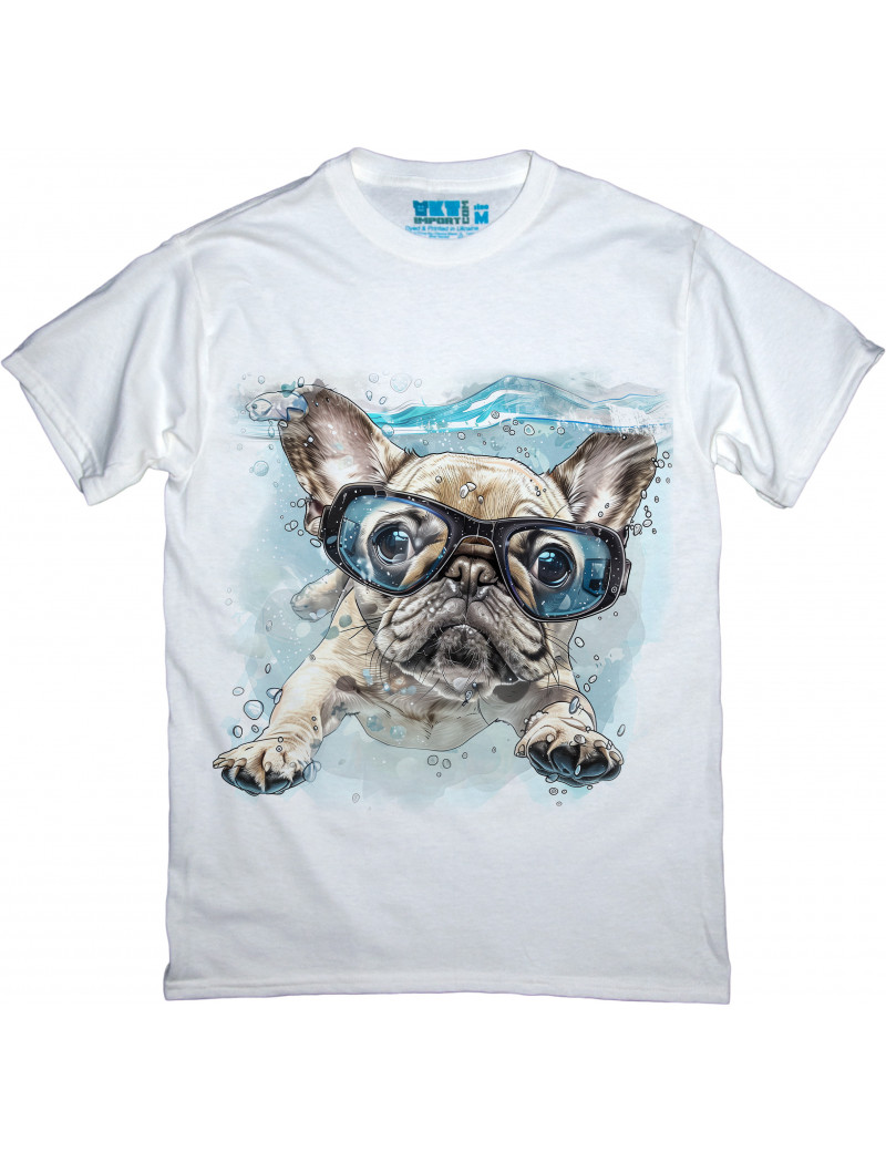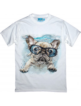 Make a splash with the Dive Doggy Dive T-Shirt! Featuring an adorable French Bulldog wearing oversized swim goggles and diving underwater, this tee is perfect for dog lovers and beach enthusiasts alike. The playful design on crisp white fabric brings summer vibes and fun energy to your wardrobe. Whether you're hitting the pool or just chilling, this shirt guarantees smiles all around. Great as a gift or a treat for yourself!