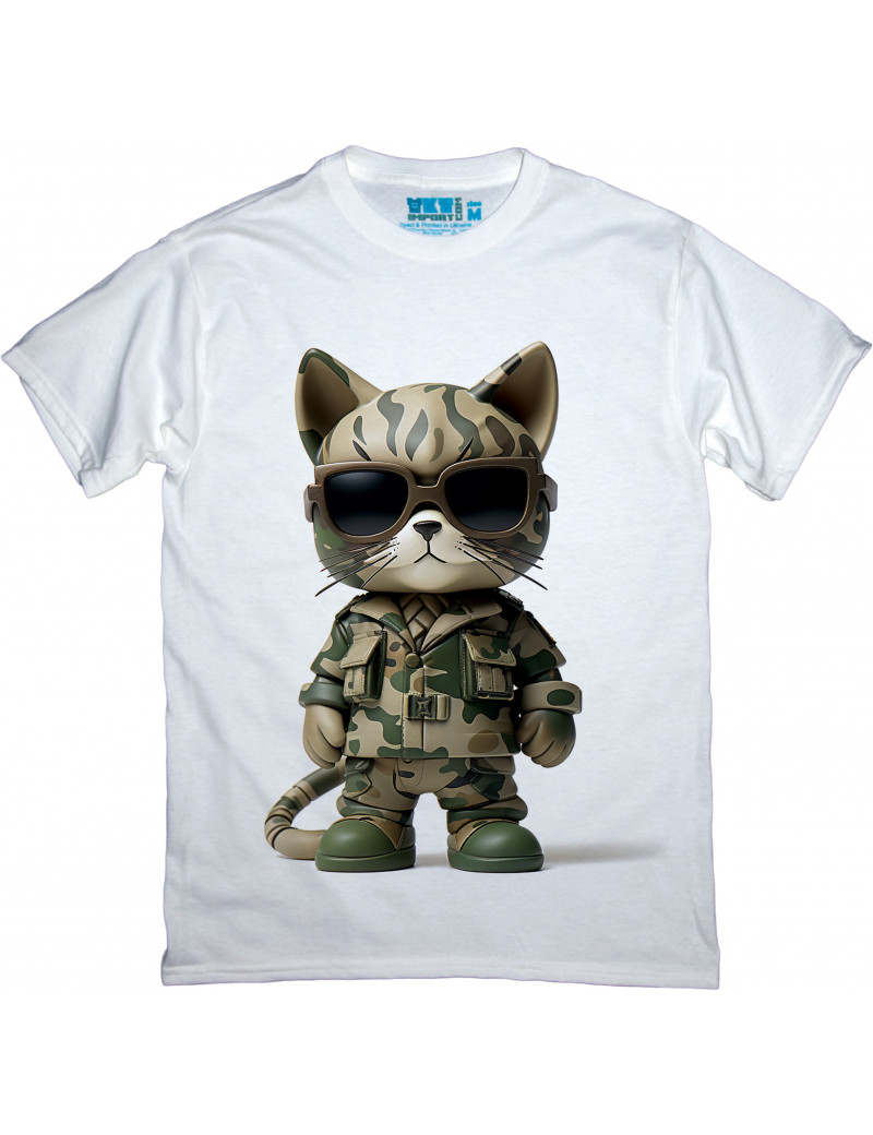 Step into style with the Camo Kitty Commander T-Shirt! Featuring a fierce yet adorable cat rocking camo gear and sunglasses, this design blends military cool with feline charm. Perfect for cat lovers, fashion enthusiasts, or anyone who loves a touch of attitude. Printed on premium white fabric, this tee is a standout choice for casual wear or as a fun, unique gift. Lead the pack with this purr-fectly bold look!