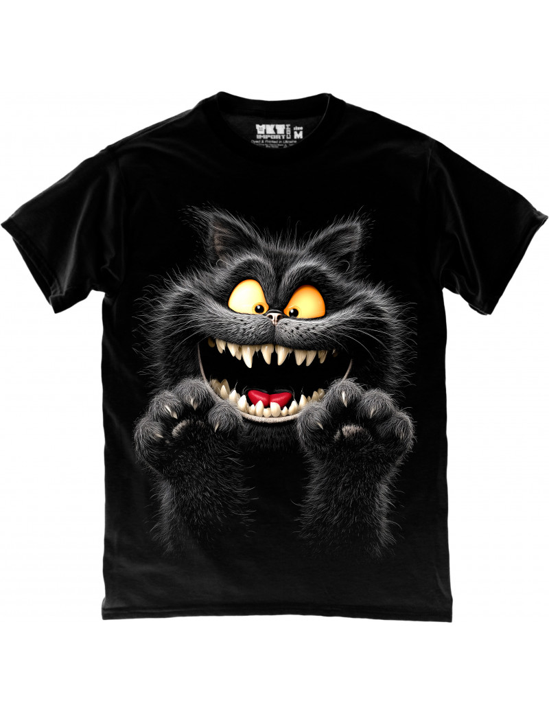 A playful black cat with wild fur and a mischievous grin — this T-shirt brings bold energy and humor to your style. Perfect for cat lovers with a fun side!