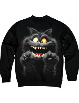 A crazy black cat with glowing eyes and a wicked grin — this sweatshirt is pure fun and attitude. Perfect for those who love bold, playful designs!