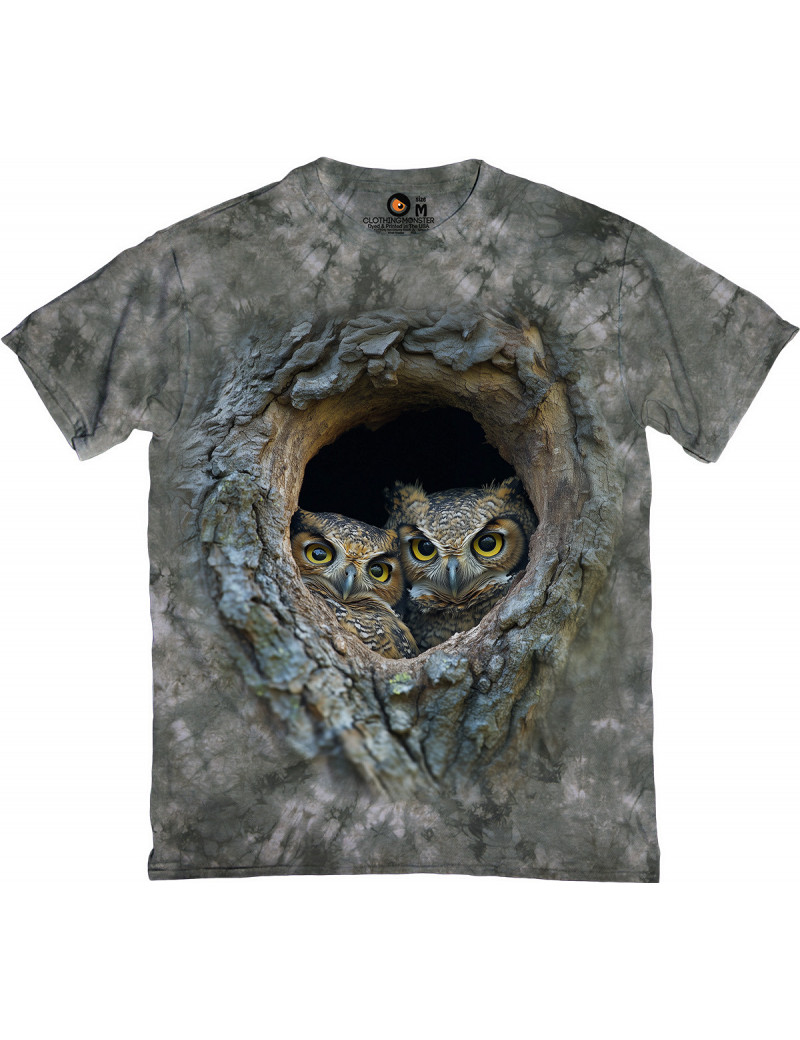 Step into the mystical world of nature with this stunning owl-themed t-shirt! Featuring two curious baby owls peeking out from their tree hollow, this hyper-realistic 3D print creates the illusion of real-life birds staring right at you.