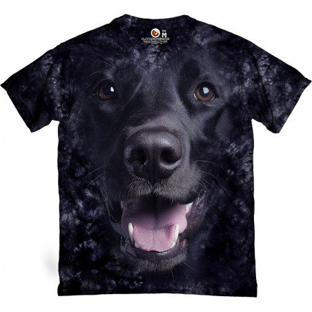 Bright tie-dye t-shirt with a playful black Labrador peeking design. Featuring realistic...