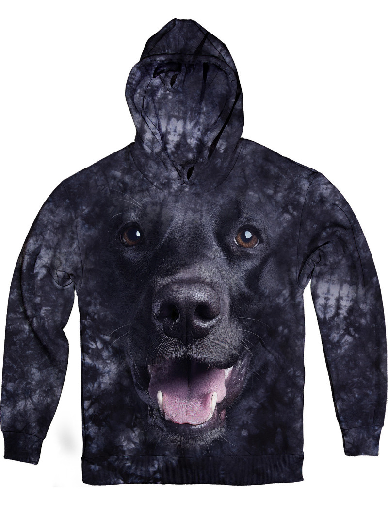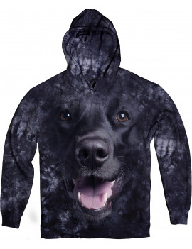 Black Labrador...Bright tie-dye t-shirt featuring a realistic print of a black Labrador face with...