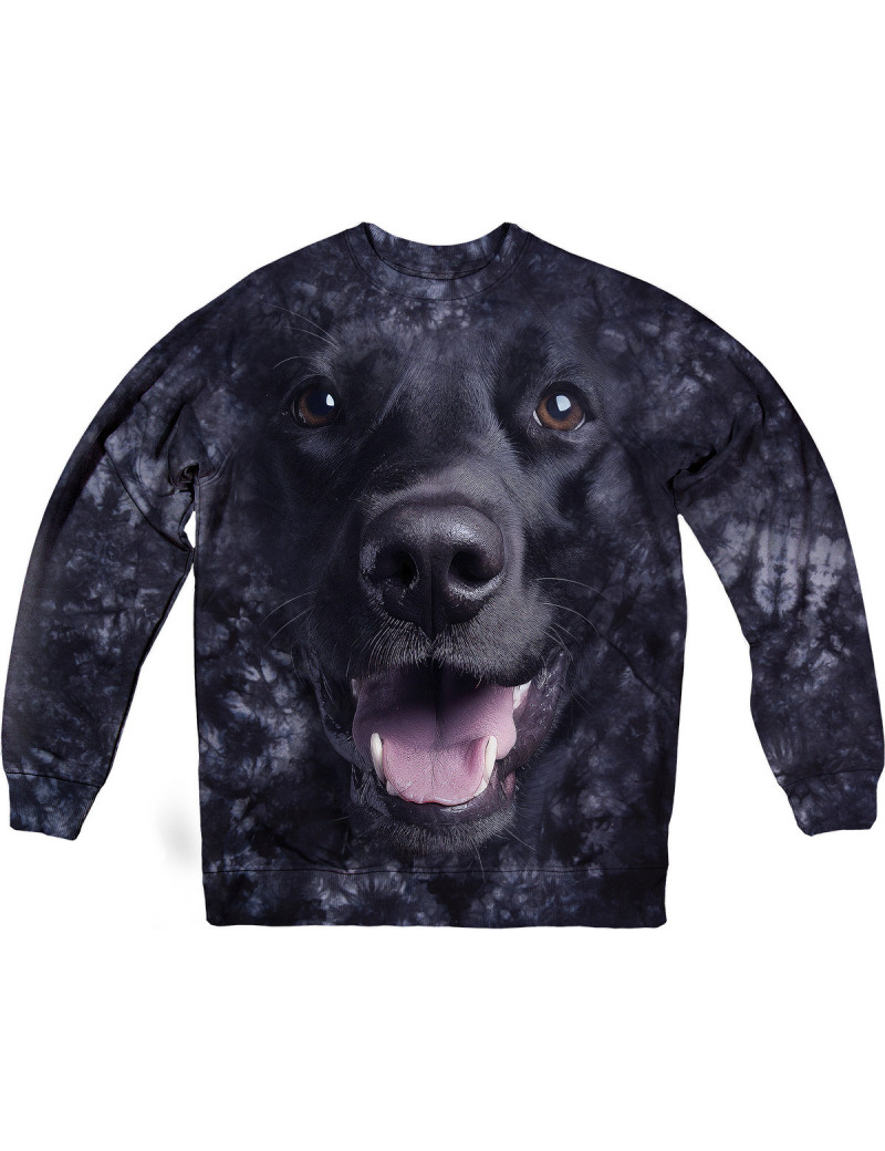 Bright tie-dye t-shirt with a playful black Labrador peeking design. Featuring realistic...