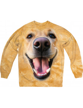 Soft tie-dye sweatshirt with a realistic black Labrador face print. The lifelike details...