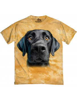 Bright tie-dye t-shirt featuring a realistic print of a black Labrador face with expressive eyes. Perfect for dog lovers who want to show their love for pets in style. Comfortable, eye-catching, and a must-have piece for any animal-themed wardrobe.