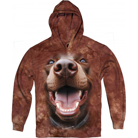 Soft tie-dye sweatshirt with a realistic black Labrador face print. The lifelike details...