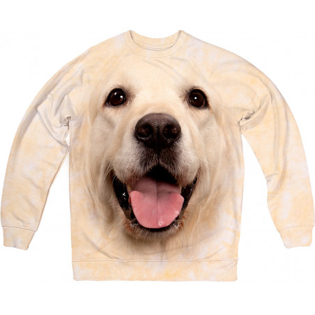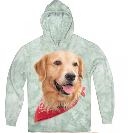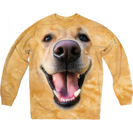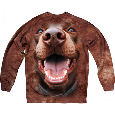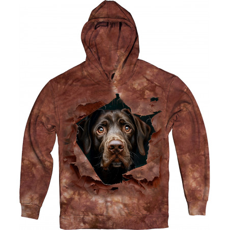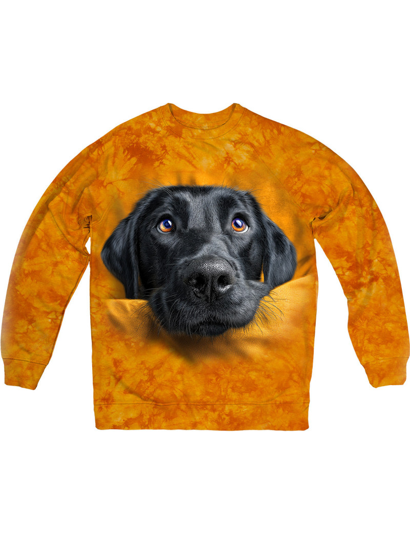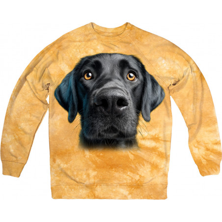 Soft tie-dye sweatshirt with a realistic black Labrador face print. The lifelike details...
