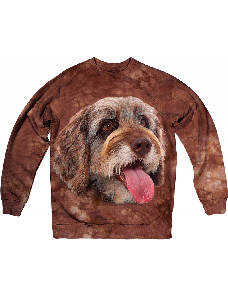 Warm and fun hoodie featuring a wild red dog cartoon with big eyes and a goofy wide-open...