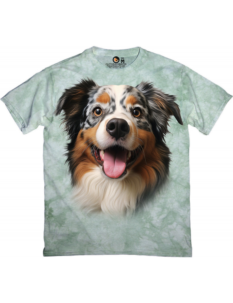 Bold and funny t-shirt featuring a cartoonish red dog with huge eyes and a goofy wide-open...