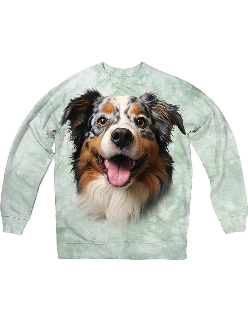 A cheerful cartoon dog in a bathrobe holding a coffee cup — this sweatshirt captures cozy...
