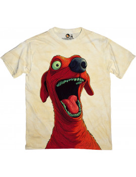 Bold and funny t-shirt featuring a cartoonish red dog with huge eyes and a goofy wide-open mouth. Perfect for those who love unique, eye-catching designs with a touch of humor. A great choice for streetwear fans and anyone who wants to stand out with playful style.