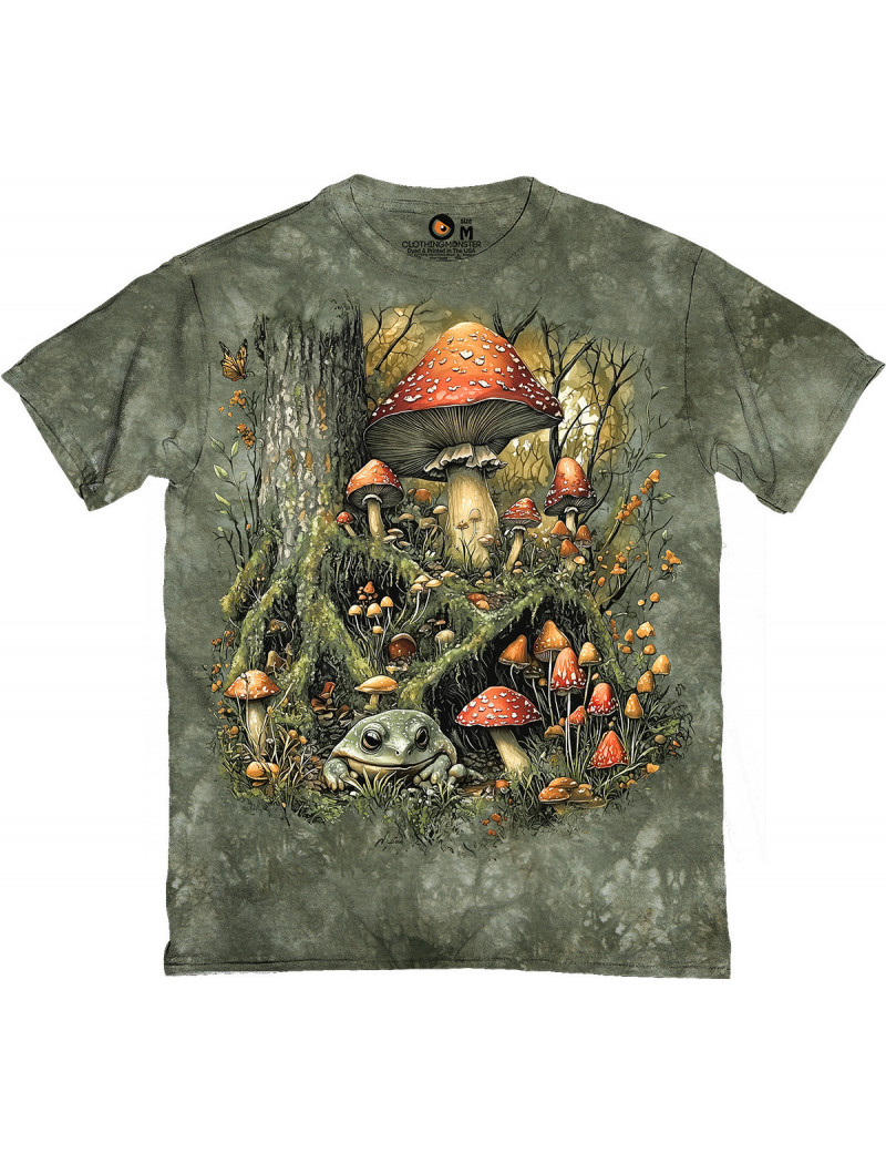 Step into a magical world with the Enchanted Forest T-Shirt! Featuring a stunning design of vibrant mushrooms, lush greenery, and a charming little frog, this tee captures the wonder of nature's hidden treasures. Perfect for nature lovers, mushroom enthusiasts, and those with a love for fantasy-inspired art. Made with high-quality fabric and an earthy color palette, it’s a unique addition to your wardrobe. Wear the magic wherever you go!