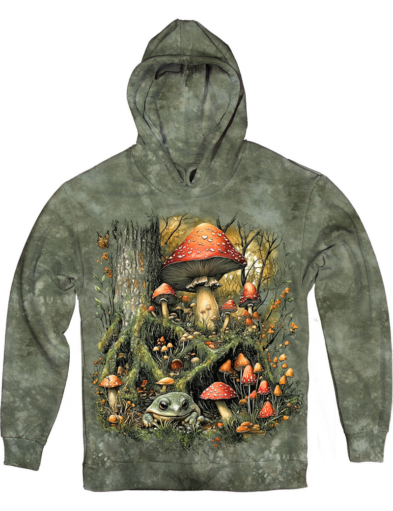Get cozy in a world of whimsy with the Frogs & Mushrooms Wonderland Hoodie! Featuring...