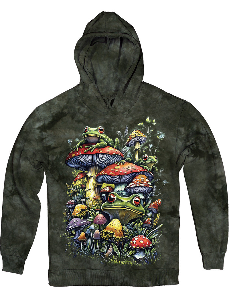 Get cozy in a world of whimsy with the Frogs & Mushrooms Wonderland Hoodie! Featuring cheerful frogs resting on vibrant mushrooms in a lush forest scene, this hoodie brings nature's magic to life. Perfect for chilly days, adventures, or simply relaxing in style, it’s crafted from high-quality fabric for ultimate comfort and warmth. A must-have for nature lovers, frog fans, and anyone who loves a touch of fantasy in their wardrobe.